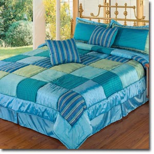 Laura Quilted Throw with Pair of Quilted Pillowshams included. Filling: 100% Polyester Bright, fun, aqua squares to brighten any room.
