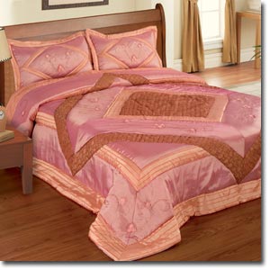 Sonia Quilted Throw with Pair of Quilted Pillowshams included. Filling: 100% Polyester Fresh pink colours in a traditional patchwork design.