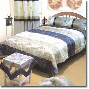 Aquarius Quilted Throw and Pillowshams Co-ordinating eyelet curtains, cushions and tablecloths available