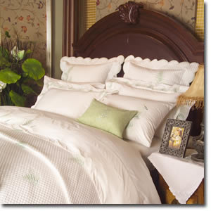 Description: 100% Cotton, 300 Thread Count Springtime a Fresh White Red Linen Design with Intricate Quilting and Extensive Fine Embroidery.